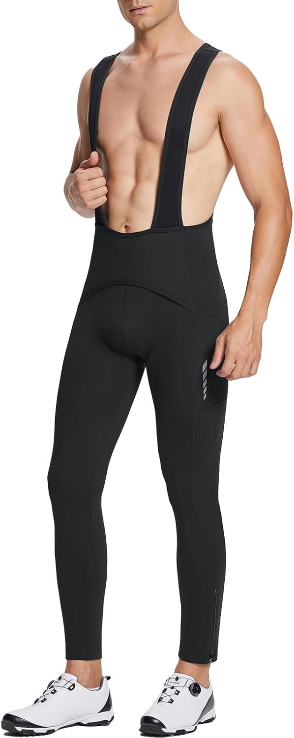 baleaf Men's Winter Cycling Bib Pants 4D Padded Thermal Water Resistant Bike Tights Cold Weather Warm Pockets