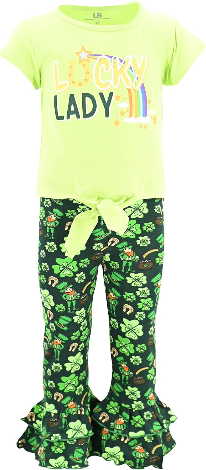 Unique Baby 2 Piece Girls Double Ruffle Leggings and Short Sleeve Shirt Clothes Set Kid and Toddler Girl Outfit