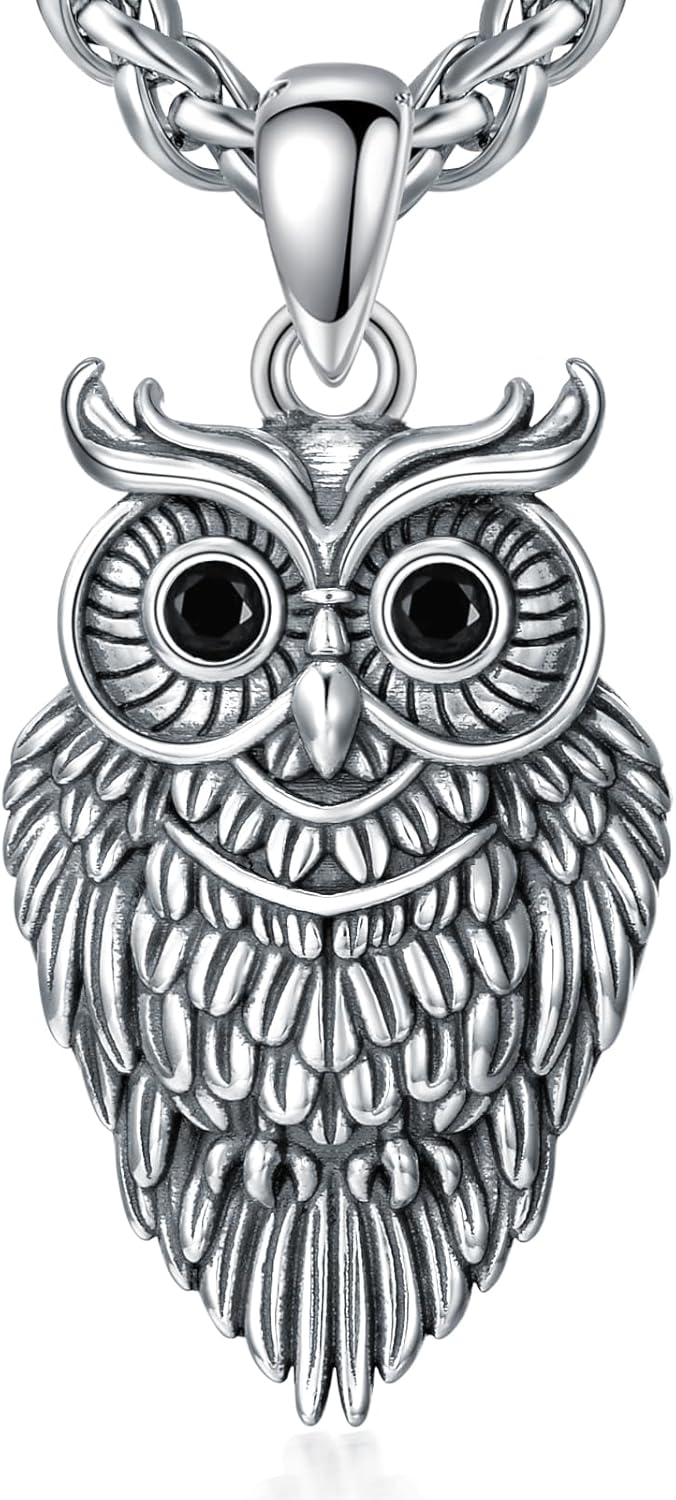 Owl Necklace 925 Sterling Silver Owl Pendant Jewelry for Men Women, w/Stainless Steel Chain 22''+2''