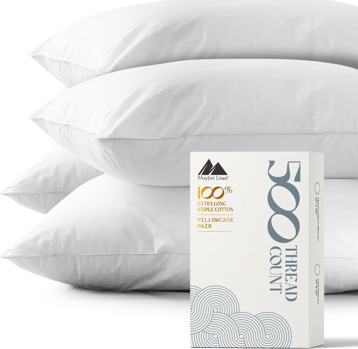 Mayfair Linen 100% Egyptian Cotton King Size Pillow Cases Set of 4 - Luxury 500 Thread Count Cotton Pillowcases King Size (2 Pair, White), Soft, Cooling & Breathable, Sateen Weave Pillow Covers