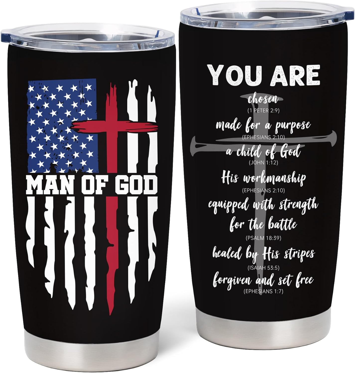 Christian Gifts for Men, Catholic Gift, Religious Gifts for Men, Christian Fathers Day Christmas Birthday Graduation Mugs, Inspirational Gifts, Bible Verse Gift, Man of God 20oz Coffee Tumbler