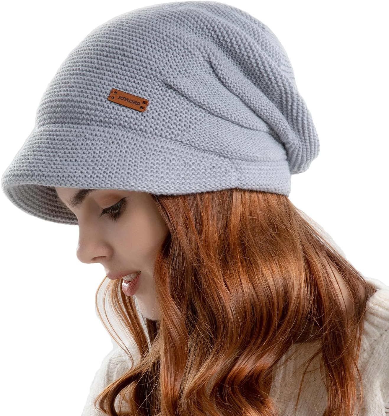 Womens Winter Beanie Hat,Fleece Lining Warm Knitted Slouchy Beanie Hats Cap with Visor