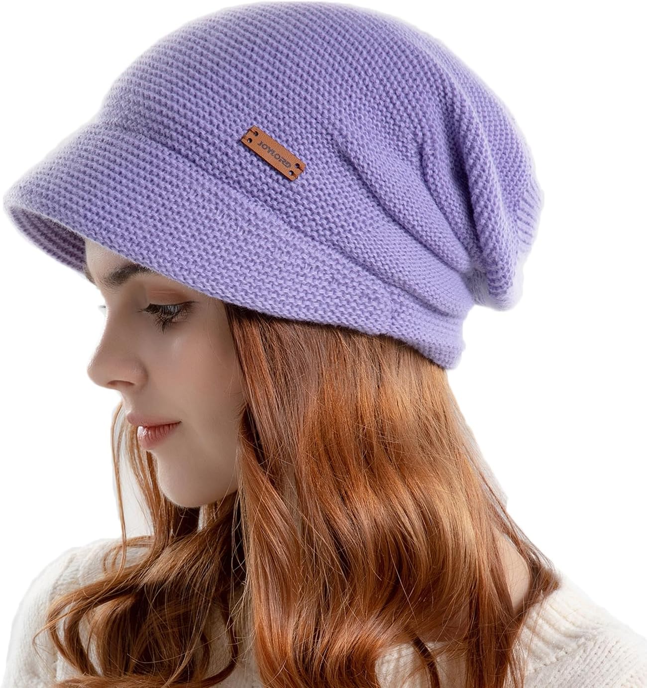 Womens Winter Beanie Hat,Fleece Lining Warm Knitted Slouchy Beanie Hats Cap with Visor