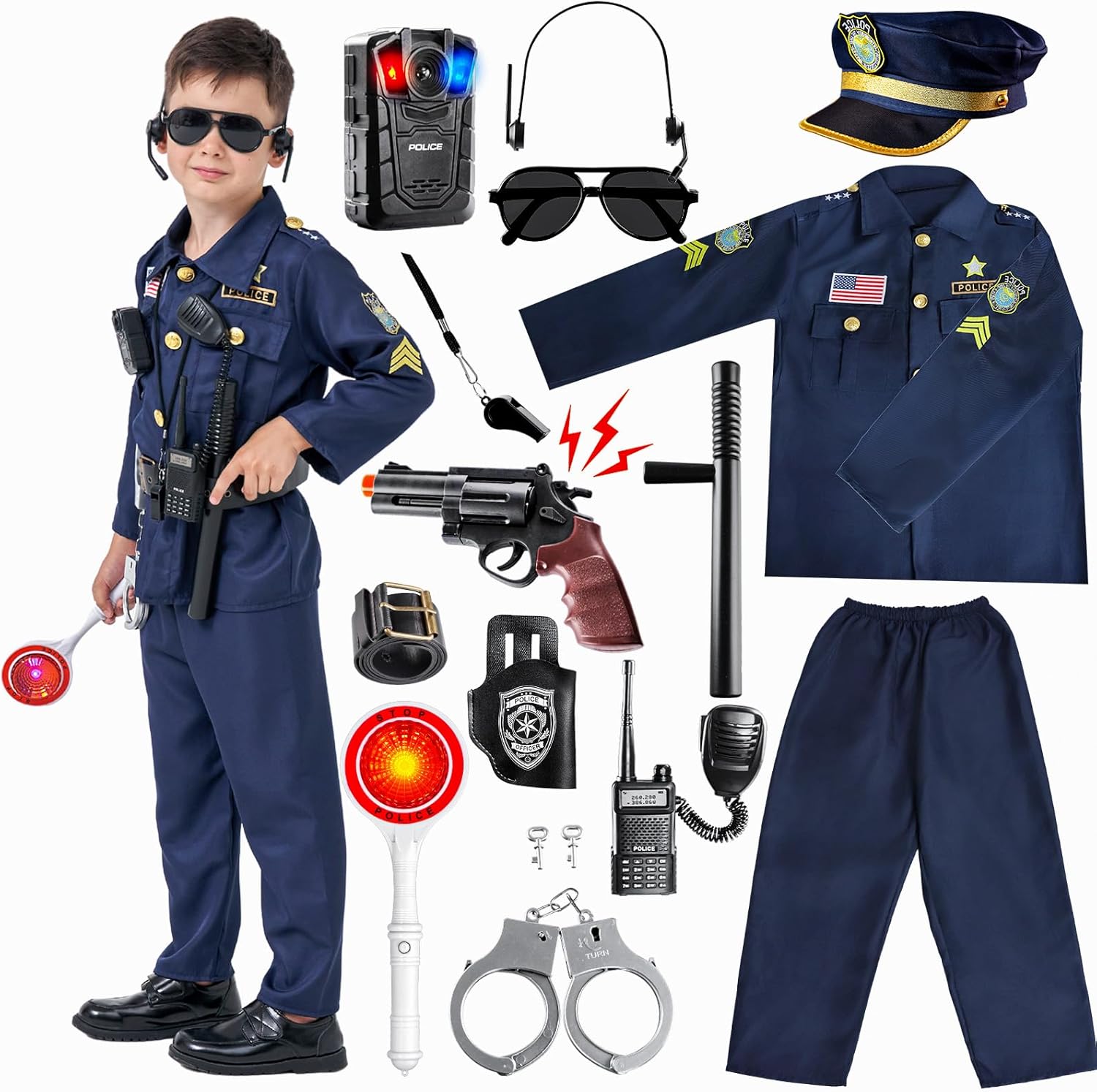 MGparty Police Officer Costume for Kids Halloween Police Cosplay Accessories for Boys Halloween Dress Up Party
