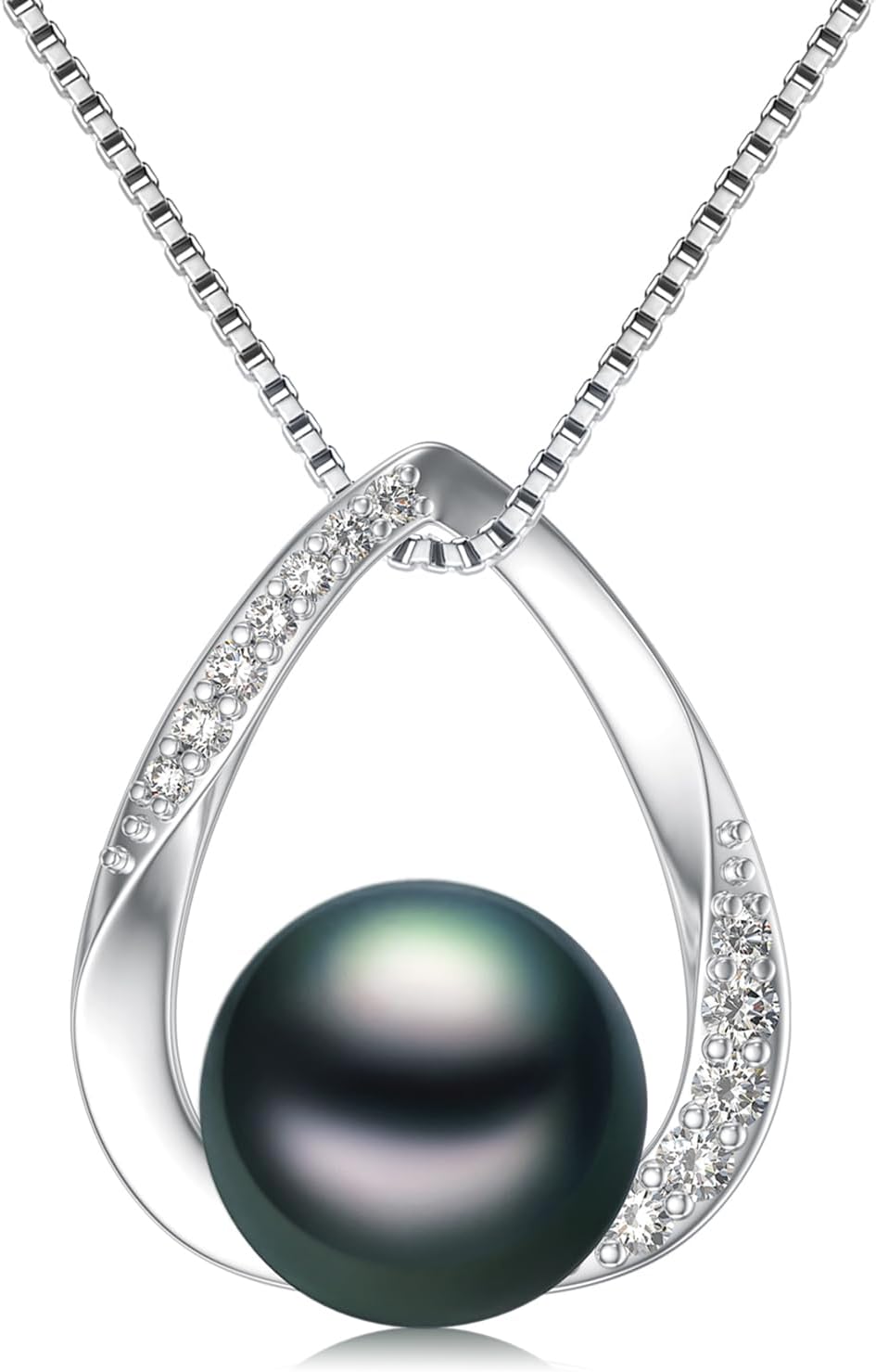 Tahitian Black Pearl Pendant Necklace AAAA 18K White Gold Plated 925 Sterling Silver Black Pearl Jewelry Gift for Women Mother Wife Her for Anniversary Christmas Birthday