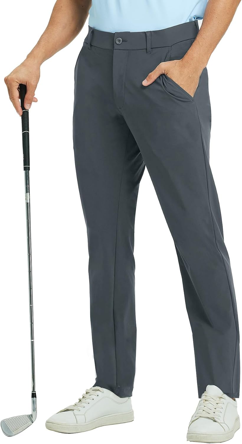 M MAELREG Mens Golf Pants Stretch 30"/32"/34" Quick Dry Lightweight Casual Business Mens Slacks with Pockets Dark Grey