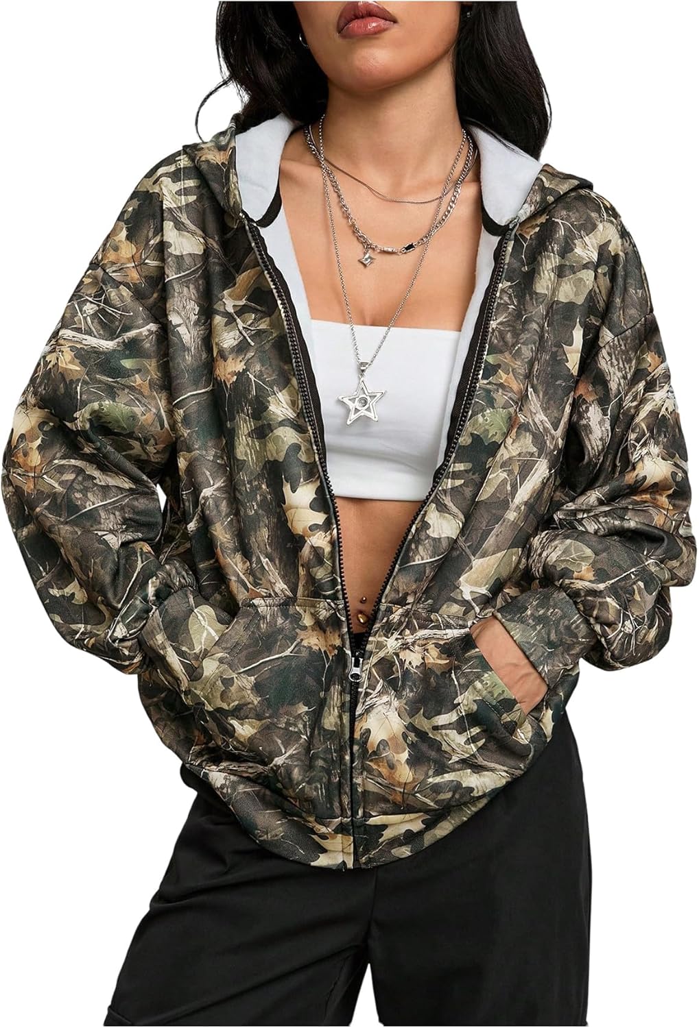 SOLY HUX Women's Y2k Camo Oversized Hoodie Vintage Zip Up Drop Shoulder Streetwear Sweatshirts with Pockets