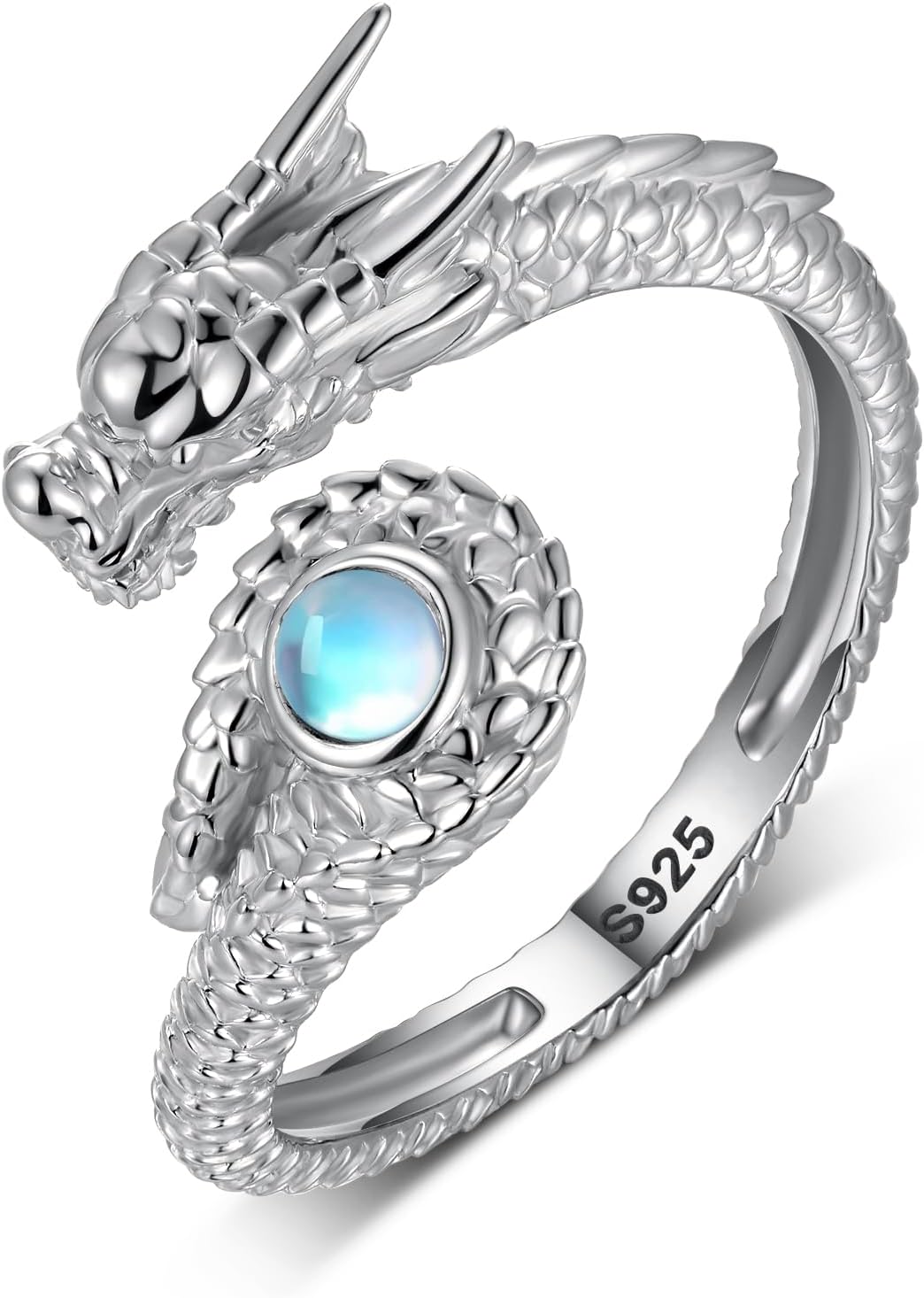 Dragon Ring 925 Sterling Silver Dragon Ring for Women Moonstone Dragon Ring Dragon Jewelry for Women