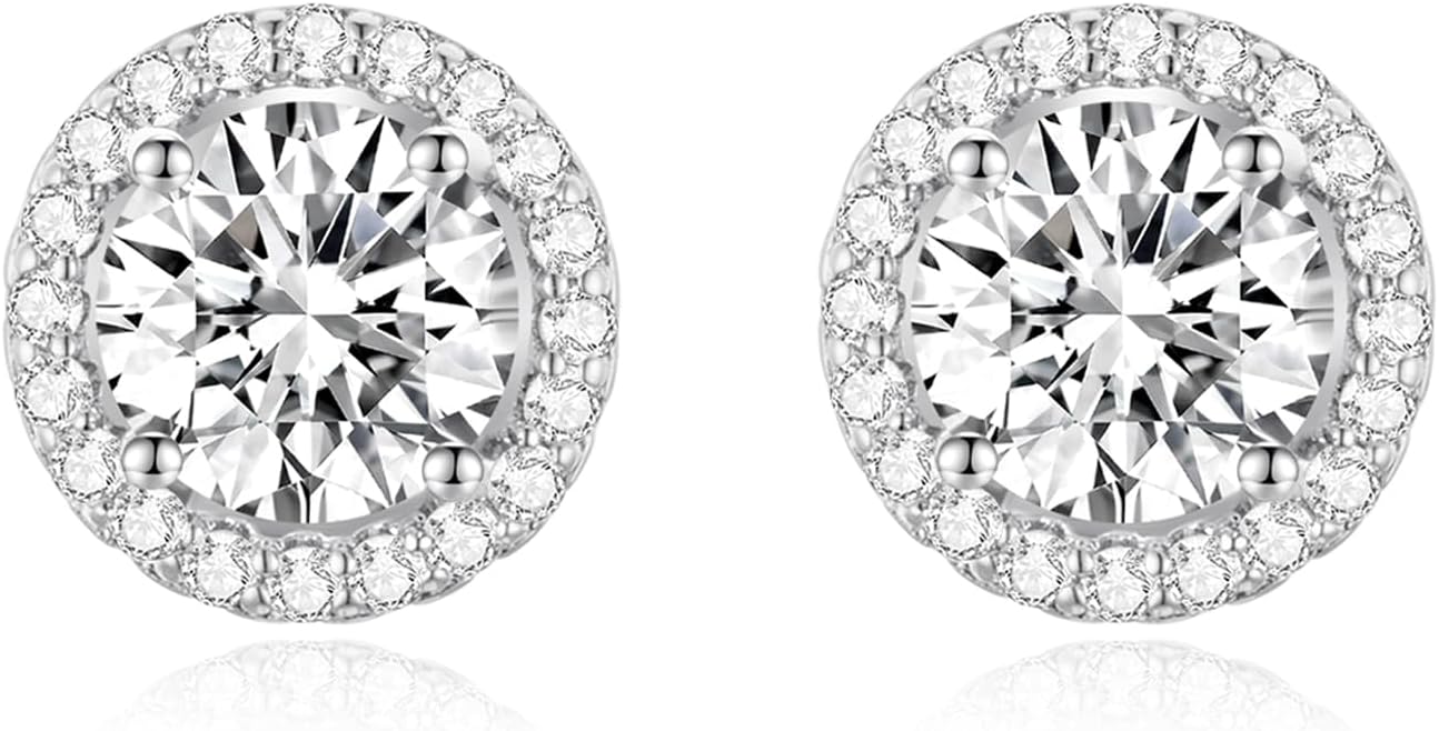 Cubic Zirconia Stud Earrings 925 Sterling Silver Post Halo Bridal Wedding Stud Earrings Hypoallergenic for Women Round/Heart/Square