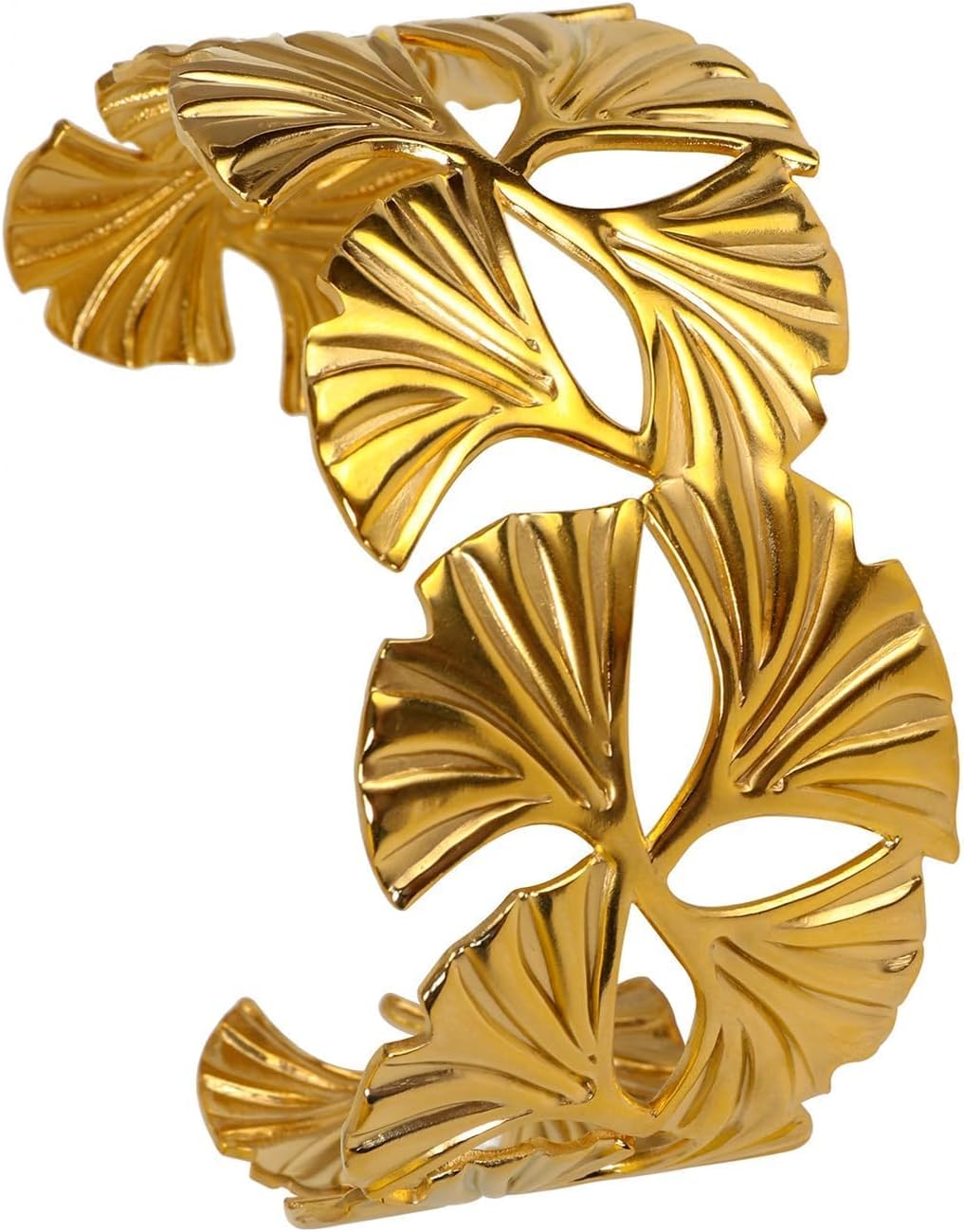 18k Gold Plated Adjustable Cuff Bracelets Personalized Open Wide Leaf Natural Stone Cuff Bangle Buckle Bracelet Jewelry Birthday Valentine's Day Gift for Women