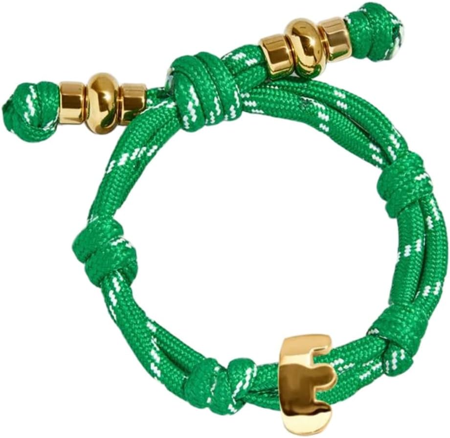 VLINRAS Green Knotted Bracelet Bubble Initial Bracelet Rope Knotty Puffy Letter Charm Personalized Jewelry