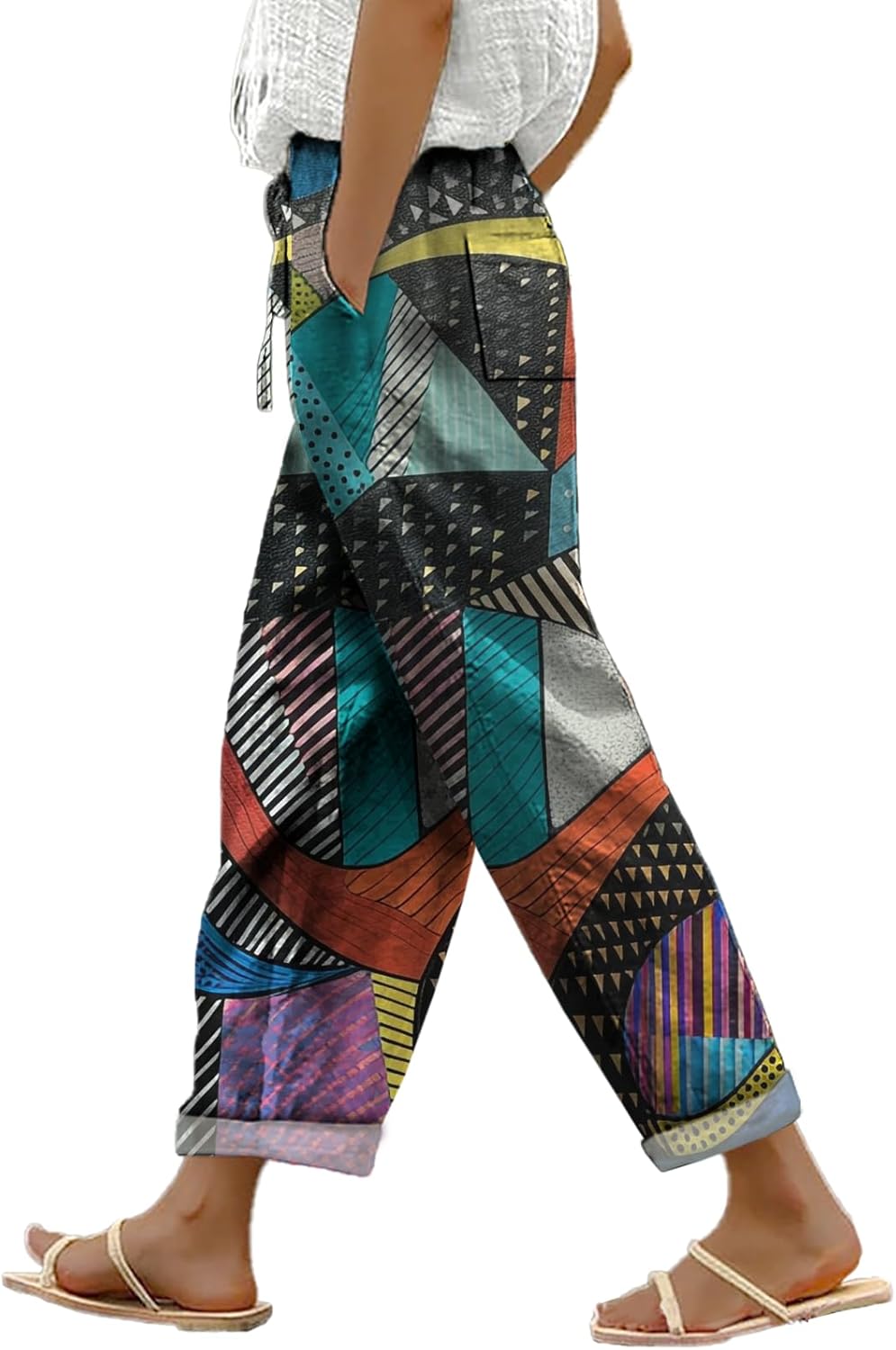 Pants for Women Summer Trendy Casual Lounge Trousers Wide Straight Leg Drawstring Slacks
