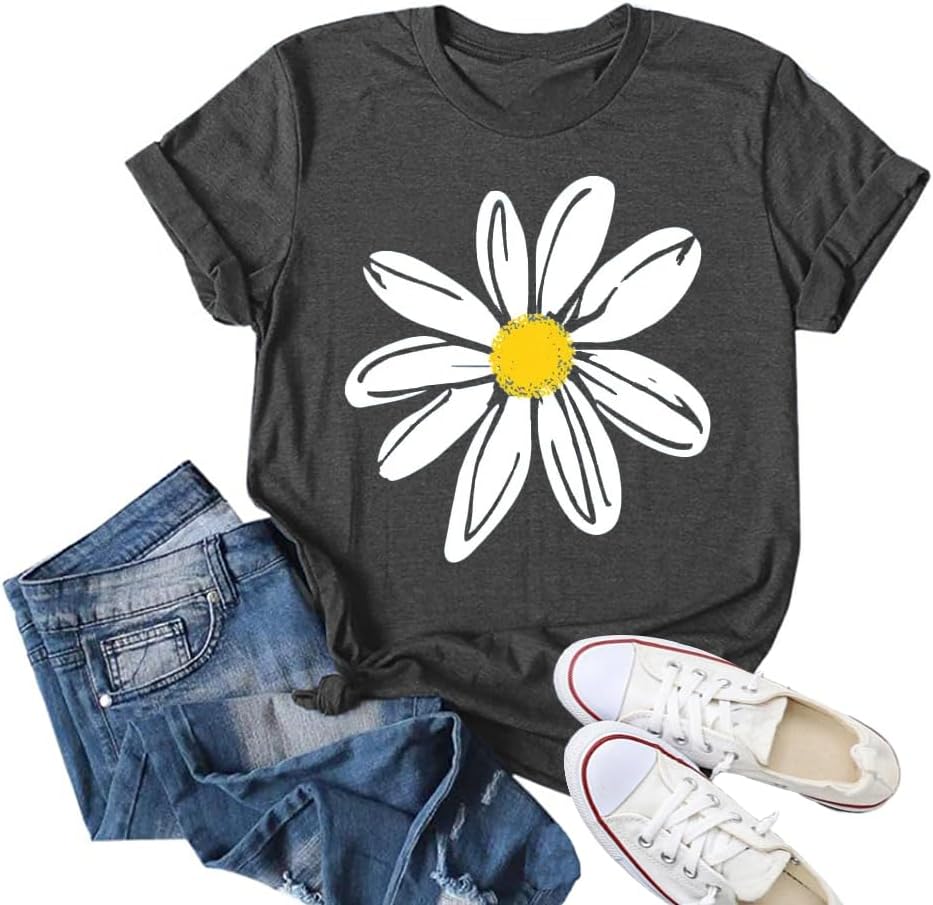 Womens Summer Tops Crewneck Graphic Tees Vintage Boho Shirts Short Sleeve Cute Loose Casual Trendy Blouse