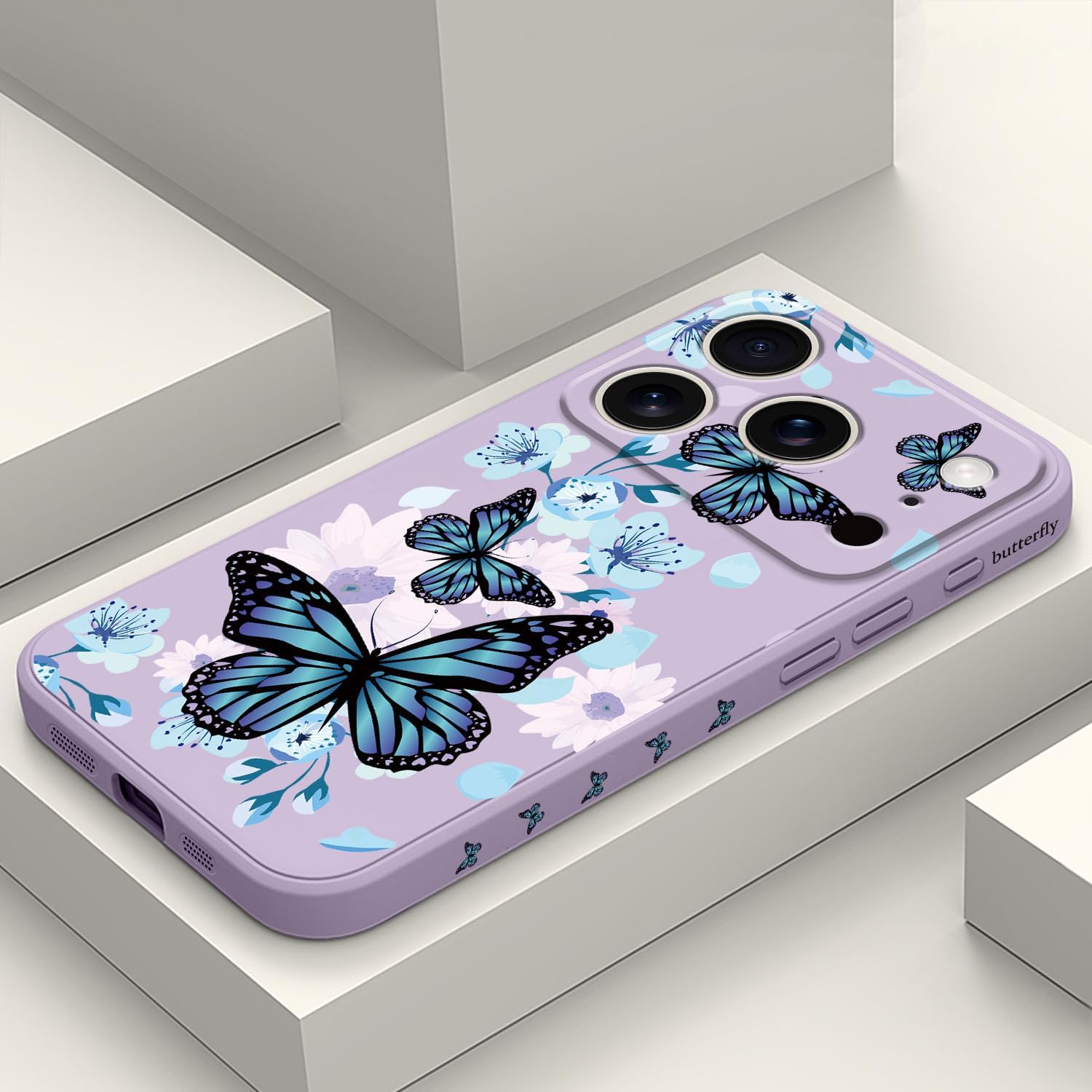 for iPhone 17 Pro Case, Printed Pattern Anti Fingerprint Fiber Lining Ultra Thin Liquid Silicone for iPhone 17 Pro Phone Cover 6.3 inch, Black Butterfly Purple