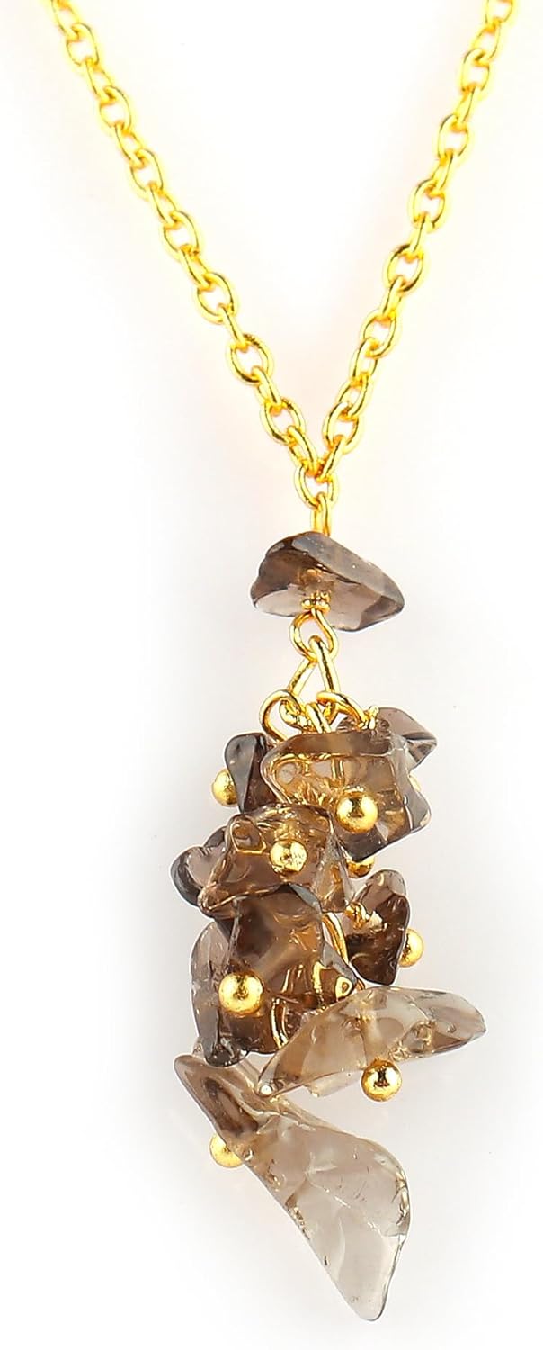 TGH Natural Gemstone Chips Y Necklace - Gold Plated Healing Crystal Pendant - 16+2 Inch Brass Chain - Spiritual Jewelry for Women