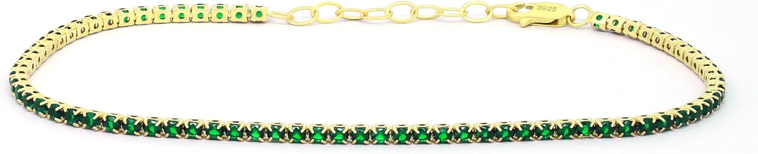 925 Sterling Silver Gold Plated Tennis Bracelet for Women, Multi-Color Cubic Zirconia Bracelet(Green/Black/White/Blue/Red), Sparkling Tennis Chain Fine Jewelry Gift for Anniversary Birthday Valentine's Day by Belantina