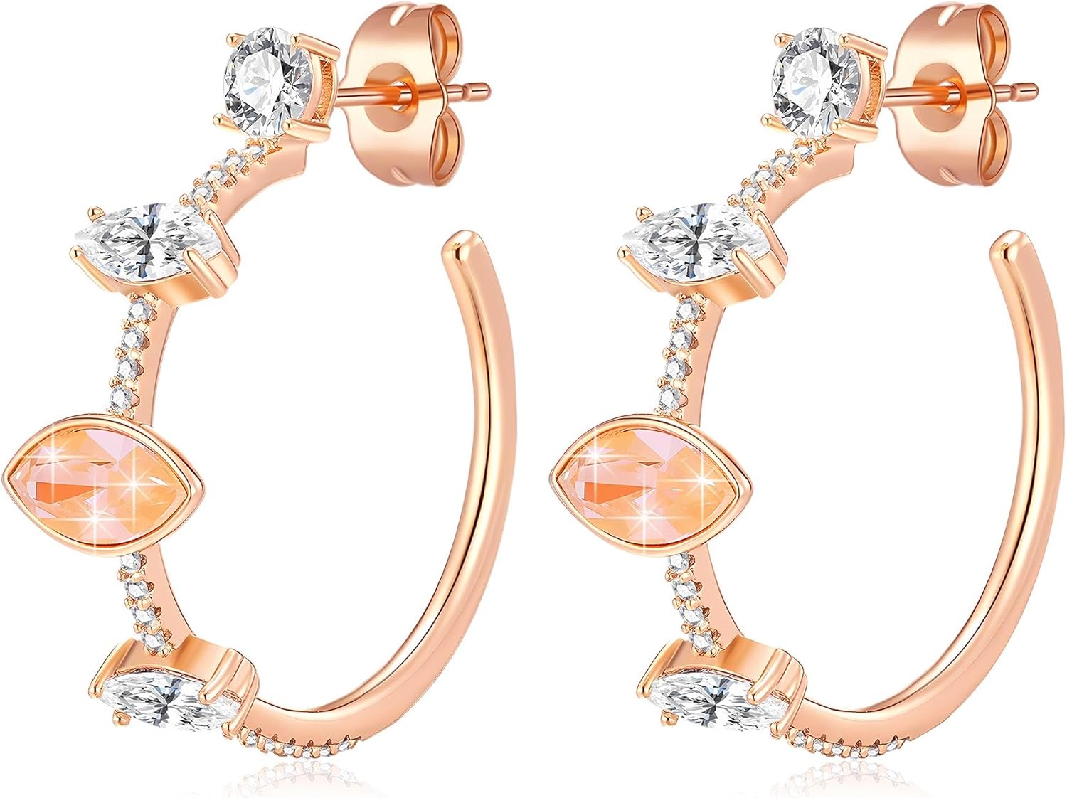 EVEVIC Trendy Austrian Crystals Half Hoop Earrings for Women 14K Gold Plated Hypoallergenic Hoops Earring Jewelry Gift