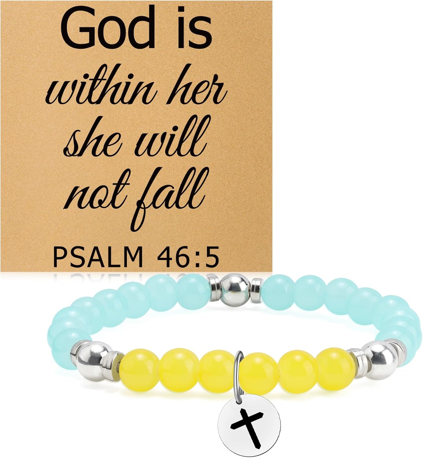 Christian Beaded Bracelets for Women Inspirational Religious Gifts Beads Bracelet Christians Baptism Gift for Friend Easter Mothers Day Birthday Present First Communion Religious Stretch Jewelry