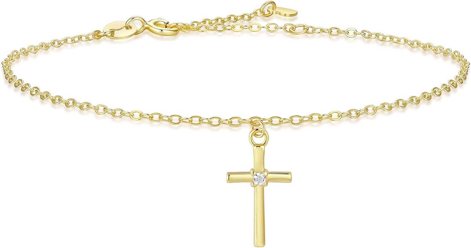 GAVU 925 Sterling Silver Zirconia Cross Bracelet for Women, Silver Cross Charm Confirmation Bracelet