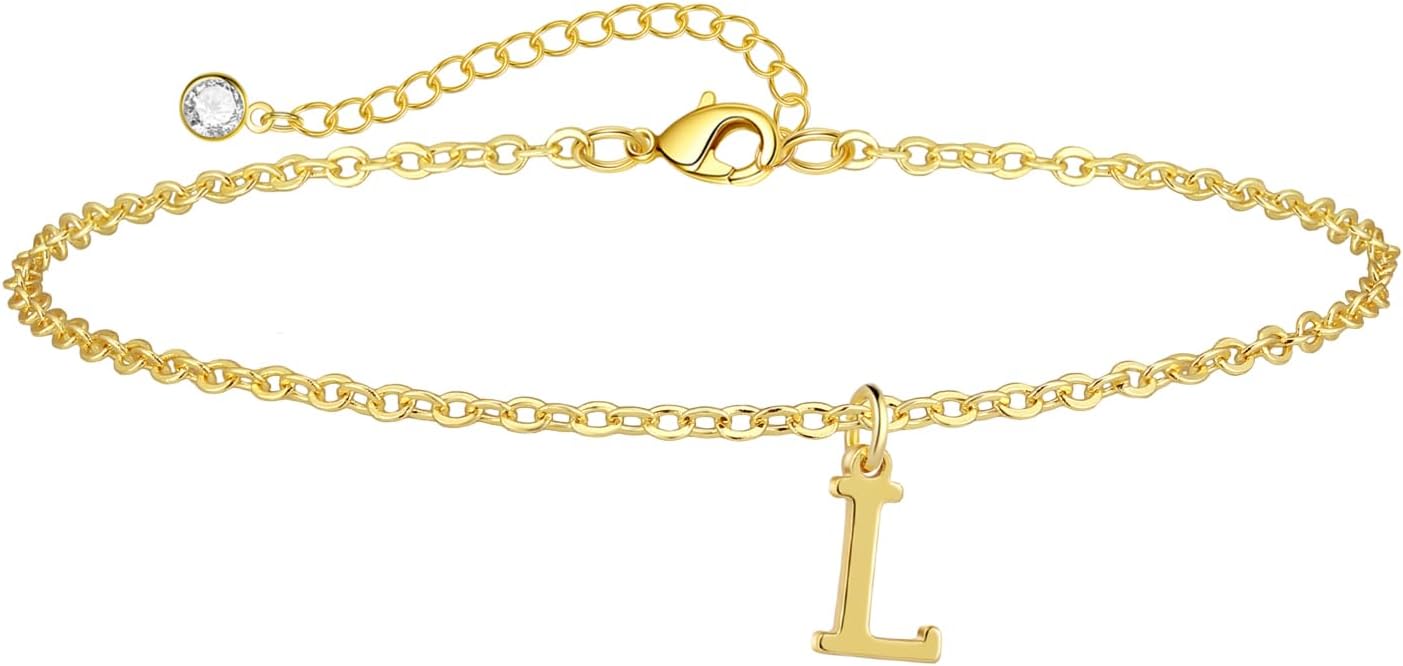 Gold Initial Ankle Bracelets for Women,14k Gold Plated Anklet Bracelet Trendy Lightweight Waterproof Dainty Anklets Summer Beach Jewelry Gift