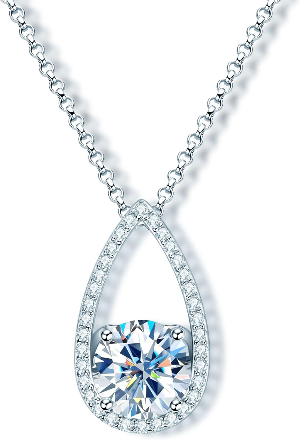 AINUOSHI 925 Sterling Silver Moissanite Necklace for Women 1CT/2CT/3CT D Color VVS1 Clarity Round Cut Moissanite Halo Set on Pear Shape Heart Back Pendant Necklace with GRA Certificate, Birthday Gift, Anniversary Present, Jewelry Gifts for Wife, Girlfriend, Mom