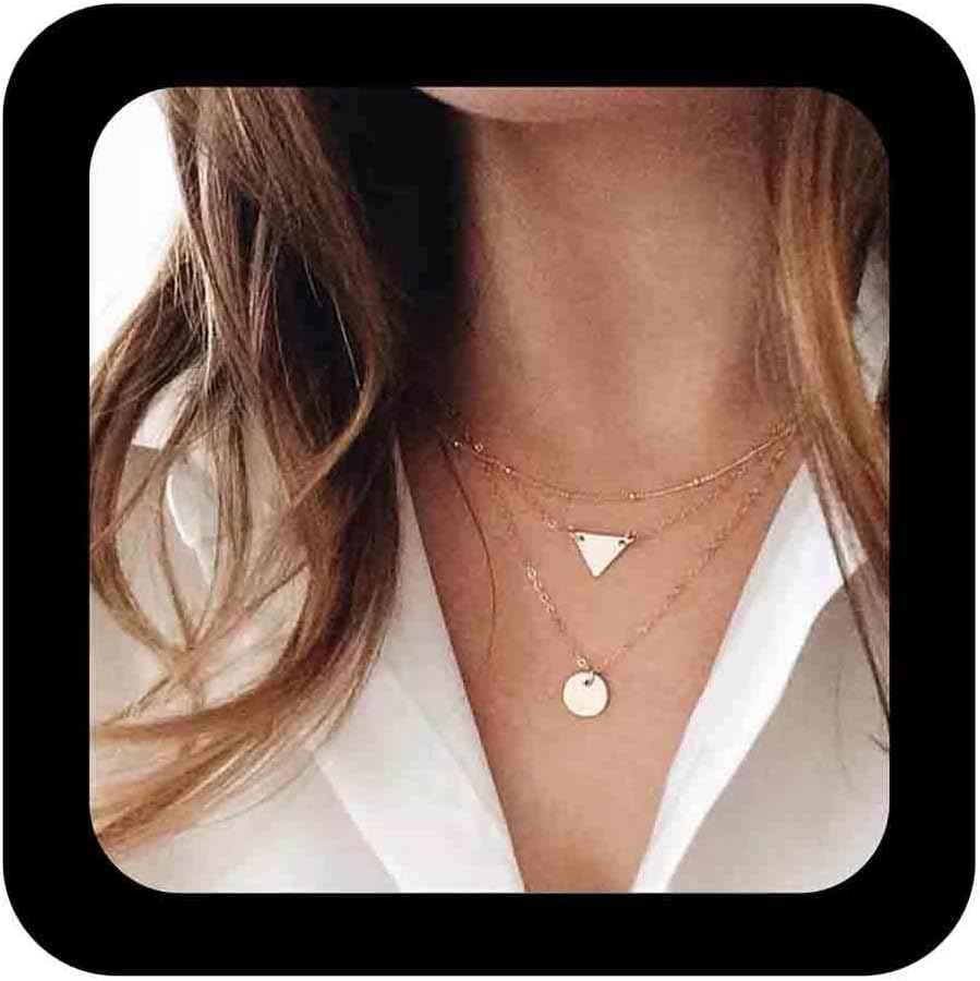 Bohemian Layered Triangle Disc Choker Necklace Vintage Coin Pendant Necklace Coin Chain Necklace Gold Multi Layering Necklace Jewelry for Women
