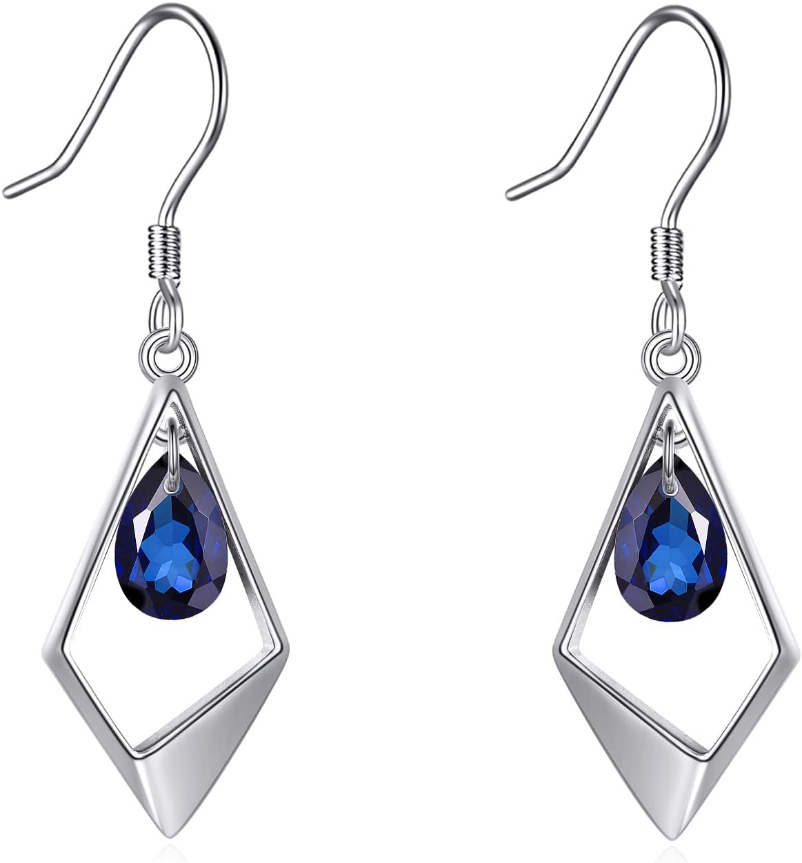 VONALA Valentine's Day Gifts Sterling Silver Dangle Earrings for Women Rhombus Drop Dangle Earrings Sapphire Leverback Hook Earring Jewelry Birthday Gifts