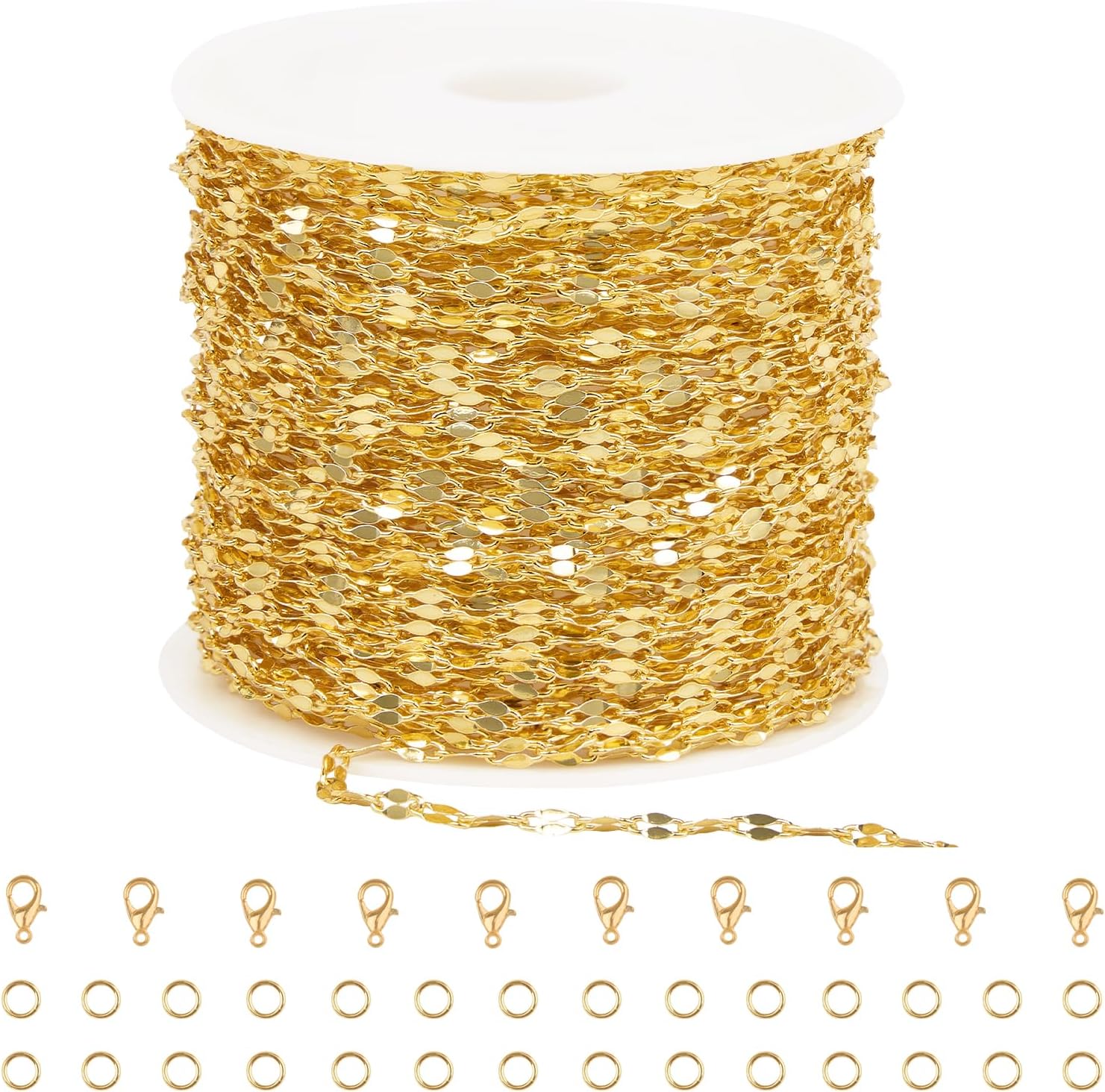 - Package Includes: You will receive 33 feet (10m) 18K gold plated lip chain , 10pcs lobster clasps and 30pcs jump rings, they can meet your various diy craft needs.