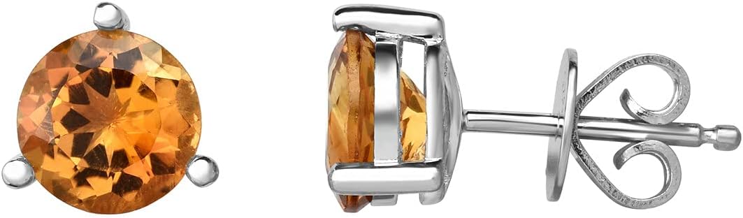 925 Sterling Silver Genuine Gemstones Martini Stud Earrings 7mm Round Birthstones