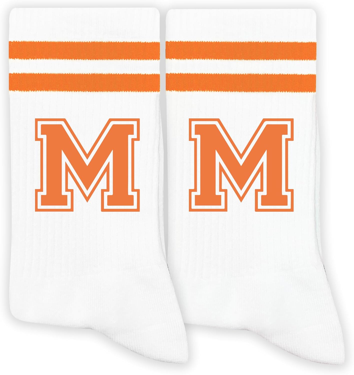 Orange Initial Stripes Socks with Letter,Gifts for Birthday,Christmas,Back-to-school Season,etc.