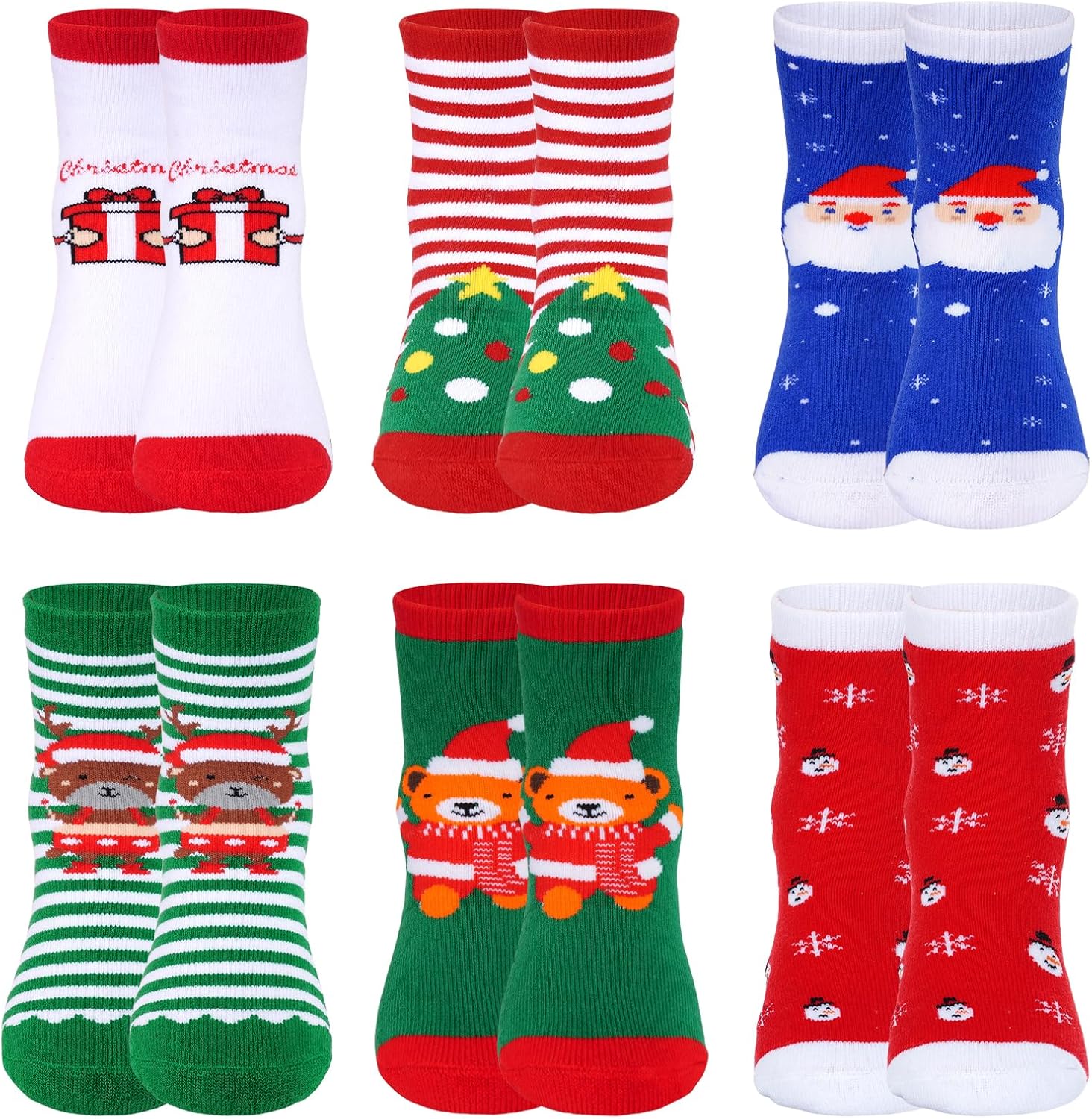 Nydotd 6 Pairs Kids Christmas Winter Socks Thick Cotton Warm Socks Thermal Crew Socks for Boys Girls Children Xmas Gift