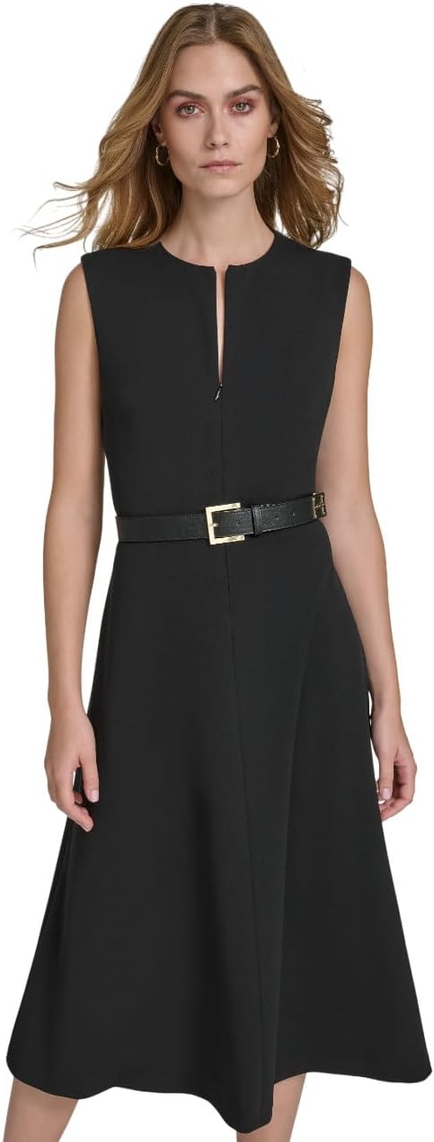 Halston Womens Sleeveless Zipper Neck Detail Knee Length Dress