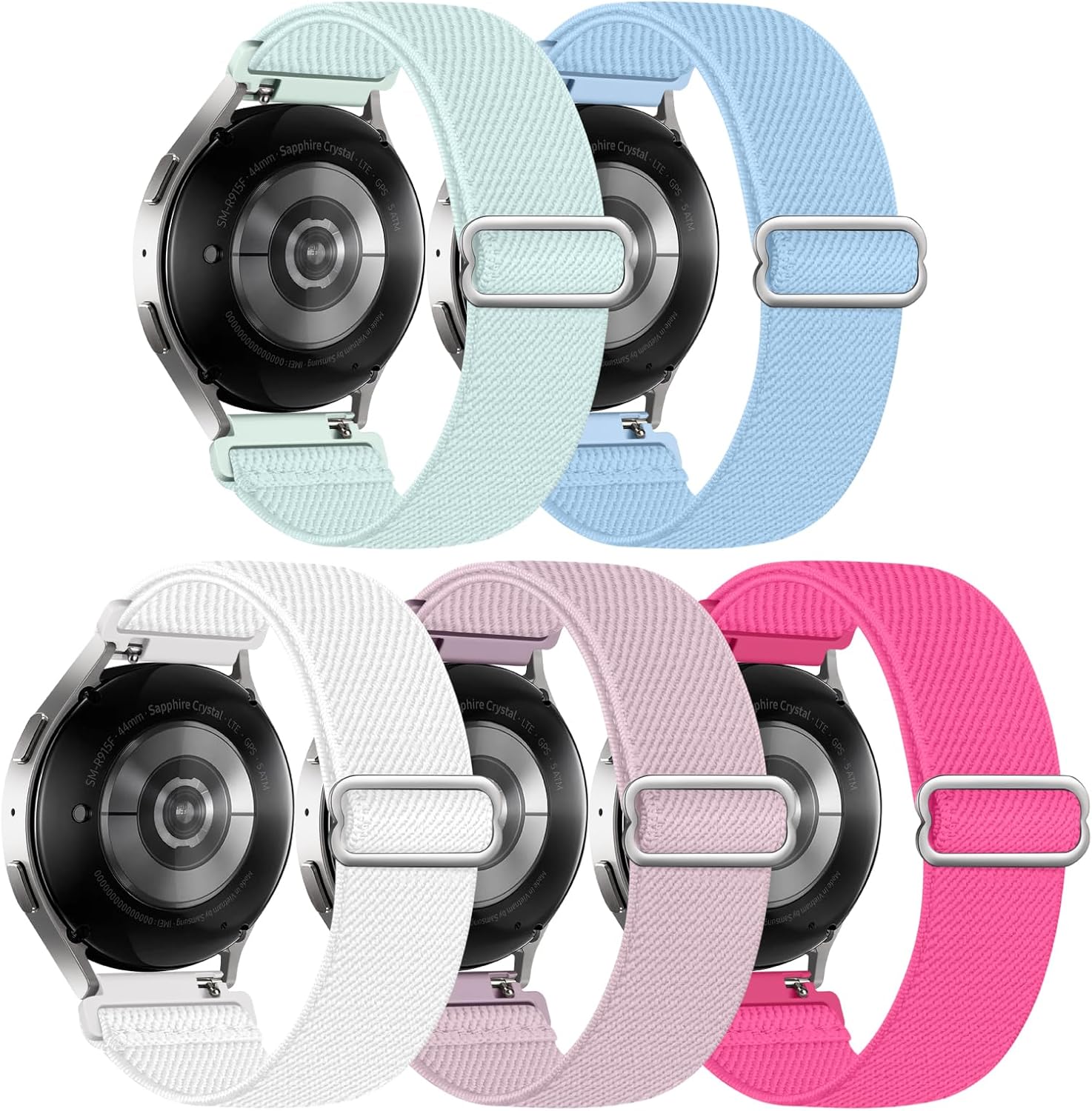 6 Pack Stretchy Bands Compatible with Samsung Galaxy Watch 7 6 5 4 40mm 44mm/Galaxy Watch 6 4 Classic 42mm 46mm 43mm 47mm/Galaxy 5 Pro 45mm/Active 2, 20mm Elastic Nylon Sport Strap for Men Women