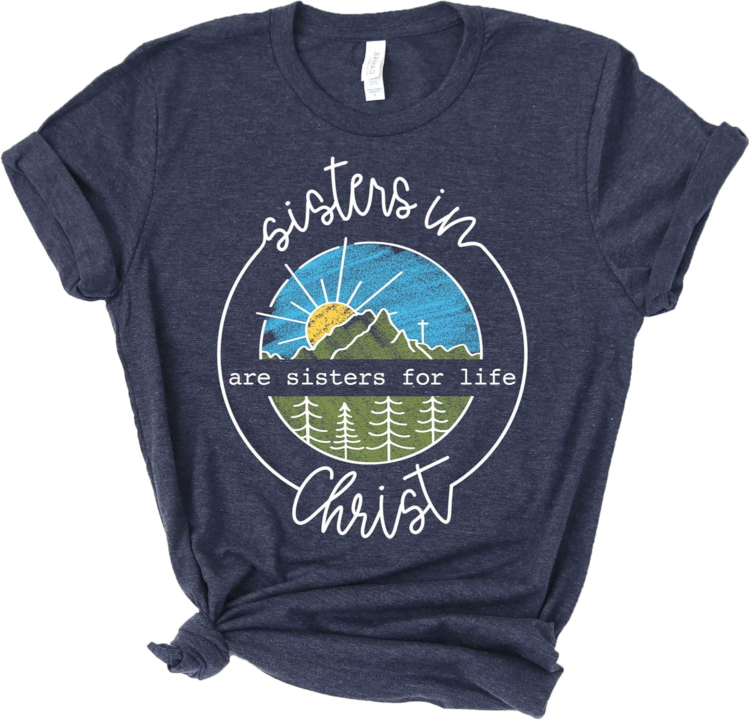 Love in Faith | Sisters in Christ | Christian T-Shirts for Women | Faith-Based Apparel | Christian Gifts (US, Alpha, Small, Regular, Regular, Heather Navy)