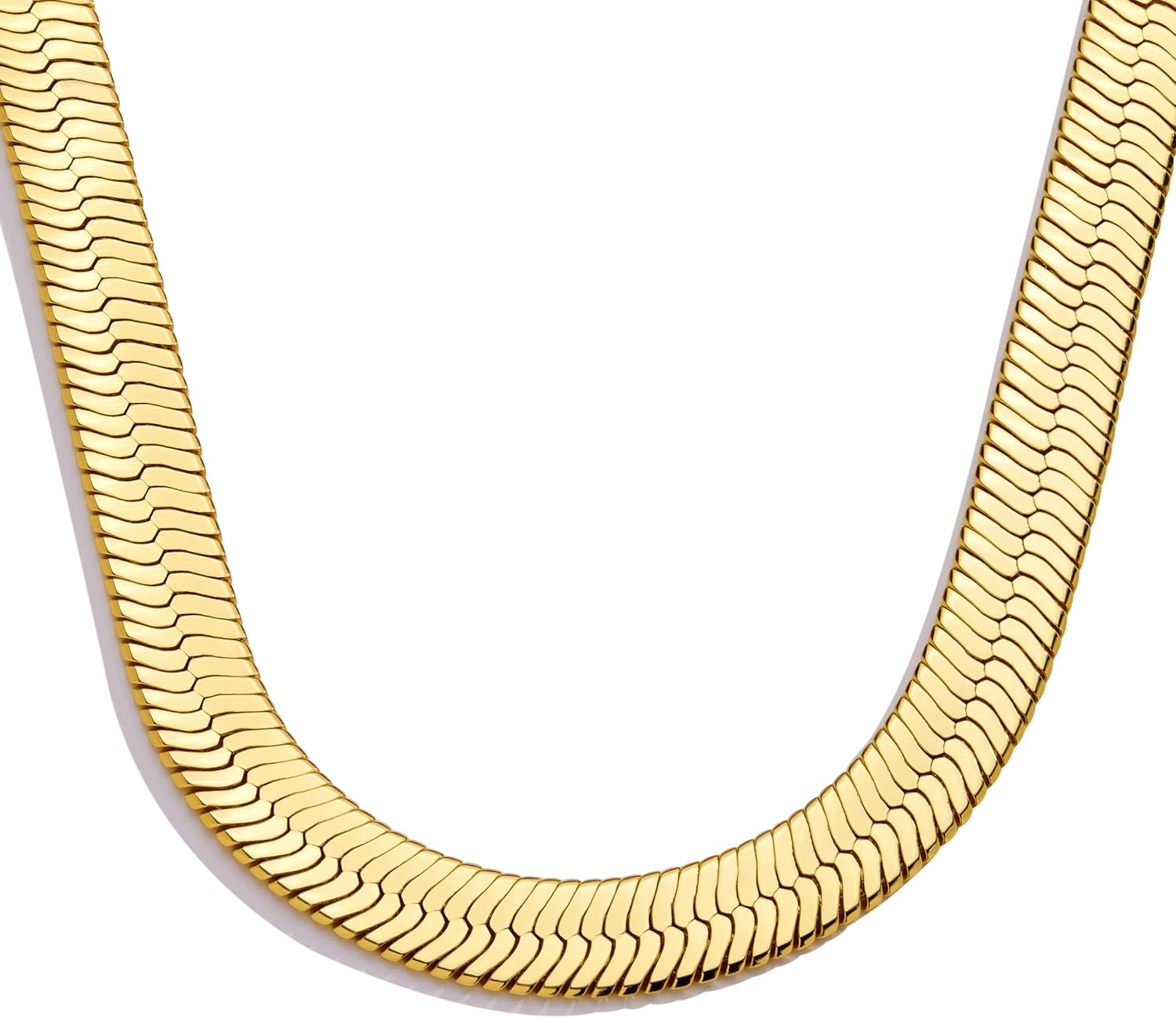 WomenGifts 14K Gold Silver Plated Herringbone Necklace for Women, Dainty Snake Chain Choker, Trendy Simple Long Layered Jewelry Non Tarnish, 3/4/5/8mm,14,16,18,20,22,24,26 Inch Thin & Chunky Options