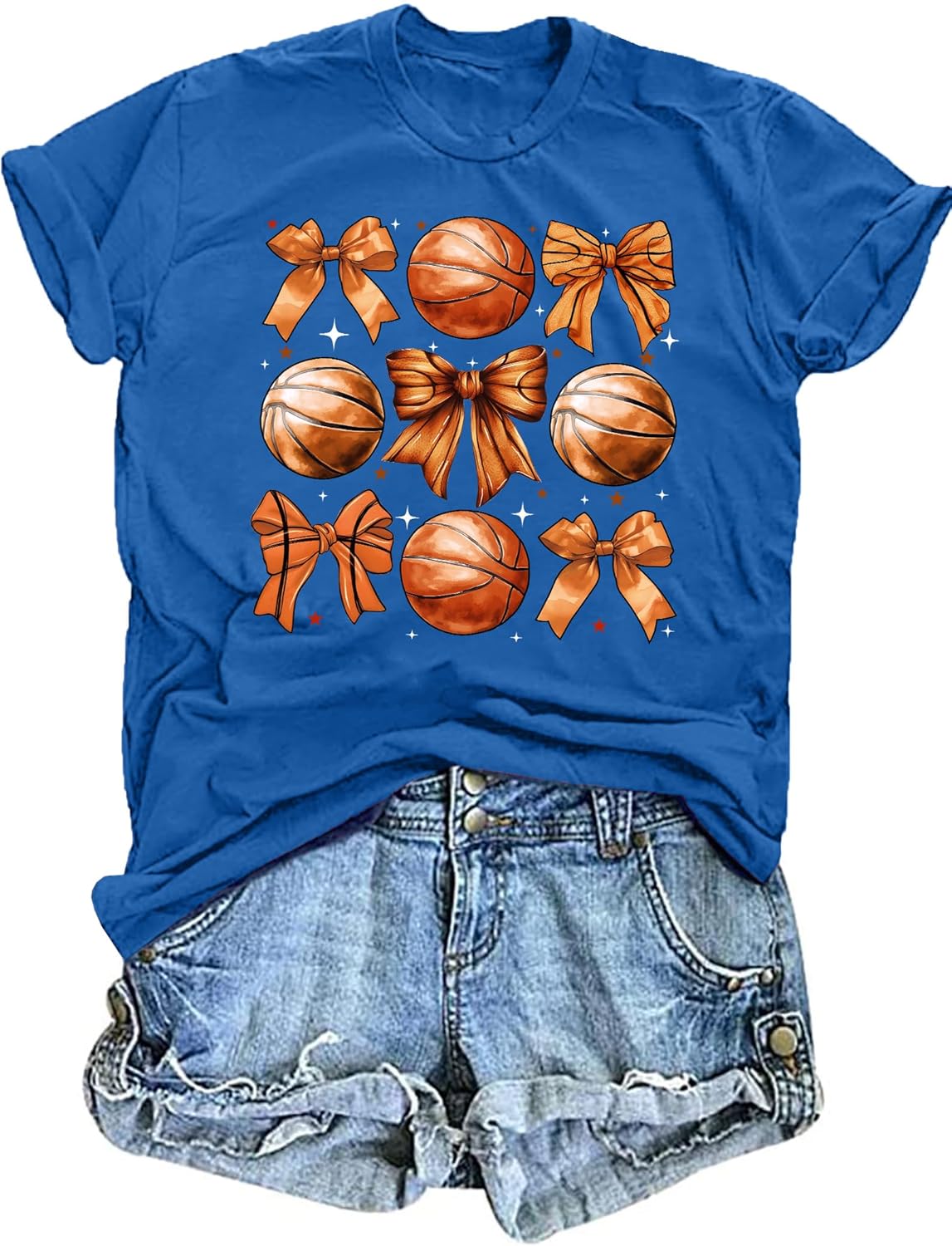 Football Shirts for Women Game Day Tshirt Football Outfits Funny Bow Graphic Tee Mom Sport Short Sleeve
