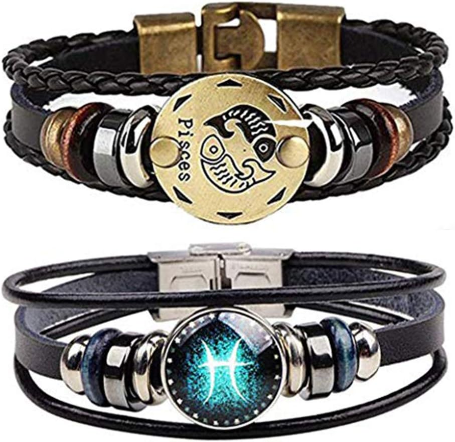 NIGHTCRUZ Constellation Braided Rope Bracelet - Punk Alloy Leather Bracelet - Hand Woven Braided Rope Punk Chain Cuff 2 PCS
