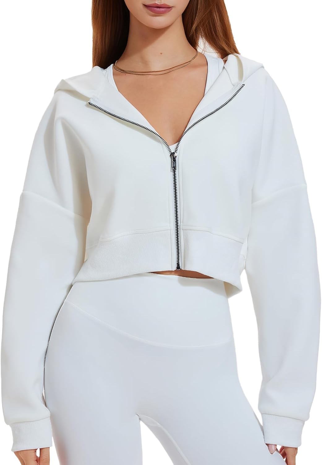 Airfree Womens Zip Up Hoodies Cropped Sweatshirt Workout Long Sleeve Jackets Hooded Y2K Casual Coat for Women