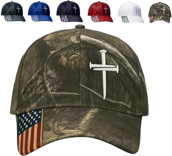 Adjustable Jesus 3 Nail Cross Hat with American Flag