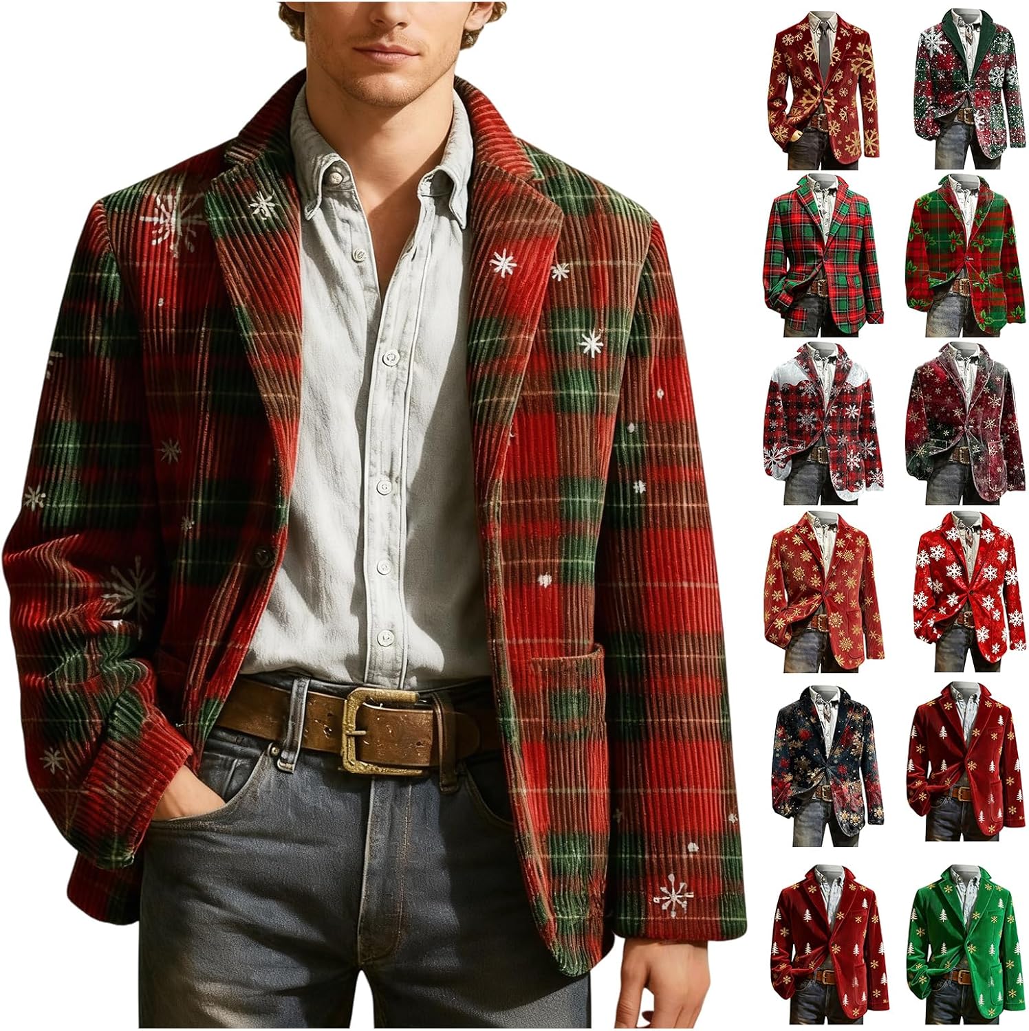Christmas Blazer for Men Vintage Corduroy Business Jacket Funny Xmas Graphic Button Lapel Jackets Holiday Blazers