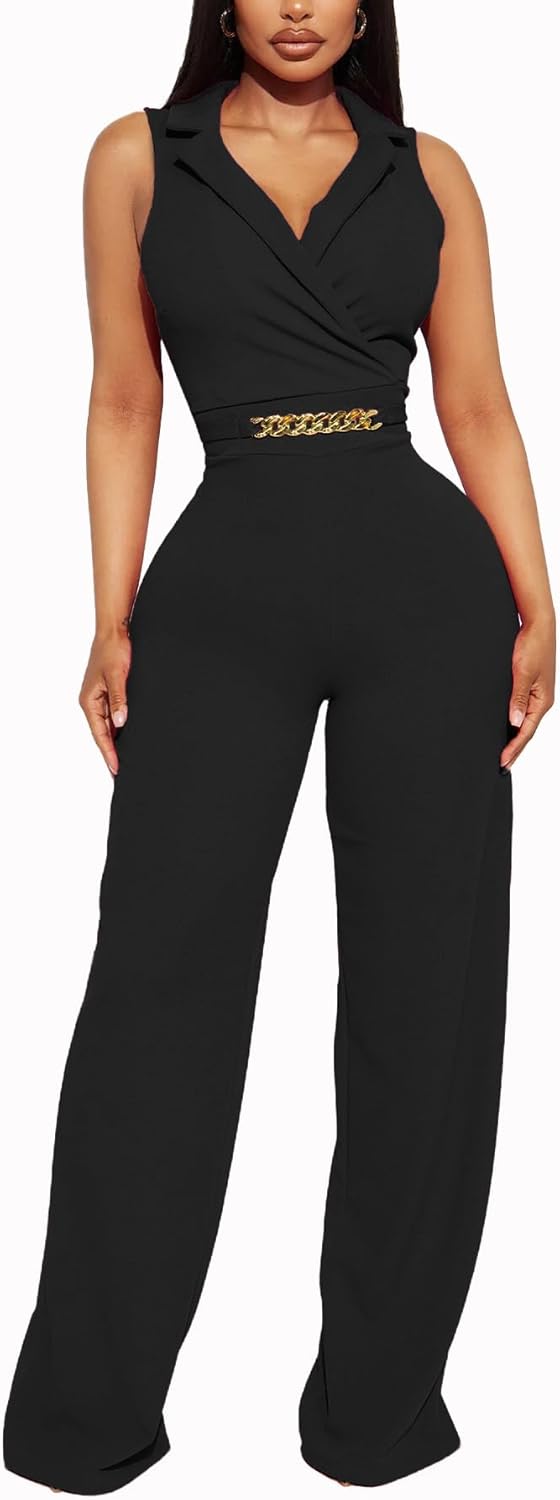 BLENCOT Sleeveless Jumpsuits For Women Dressy Casual V Neck Wide Leg Long Pants Slip Rompers Summer Overalls