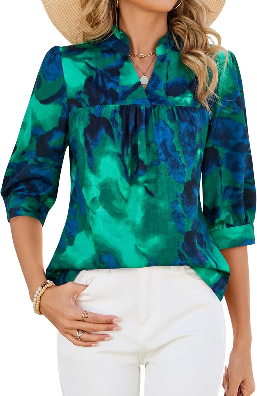 Blooming Jelly Women's Dressy Casual Blouses Summer Spring Floral Work Tops V Neck Short Sleeve Shirts Outfits