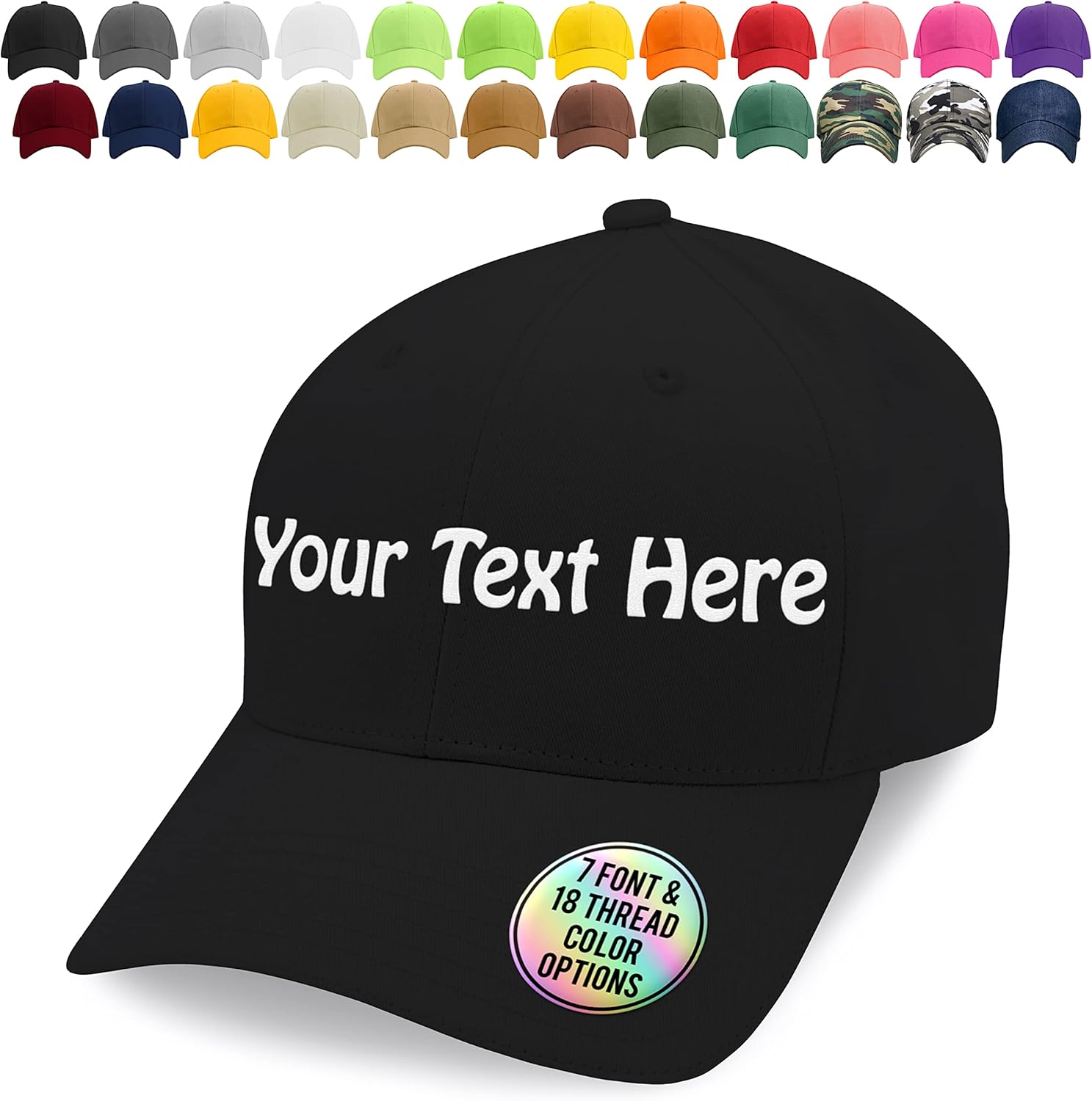 Custom Embroidered Baseball Cap for Men, Women - Your Text or Initials - 24 Cap Colors, 18 Thread Colors - Personalized Gifts