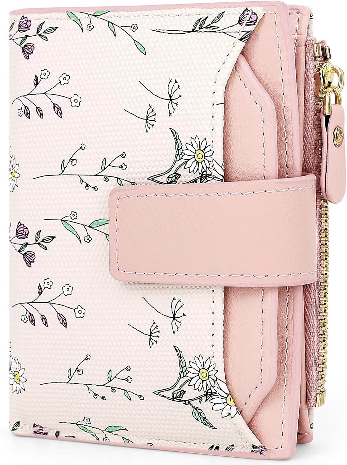 Women's Wallet Small Wallets for Women Cute Flower Ladies Women's Wallets Pink Bifold Wallet Womens With Zipper Coin Pocket Purses Card Holder Women