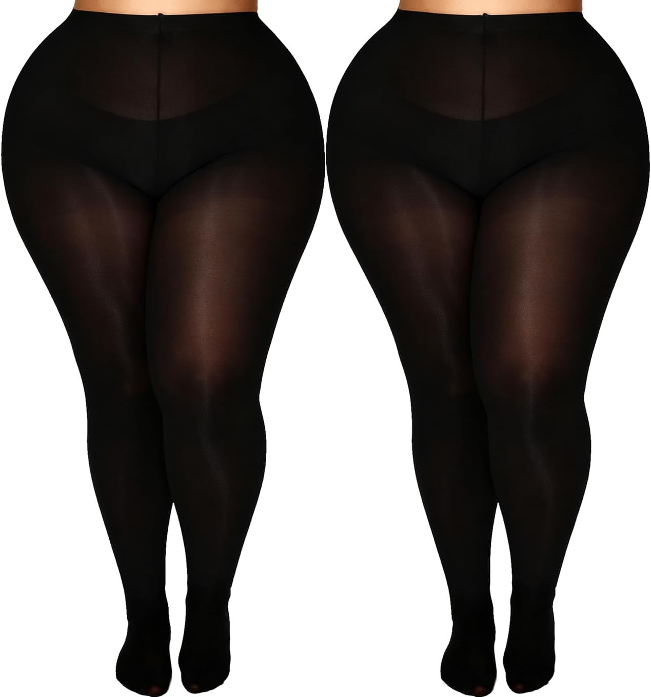 MERYLURE Plus Size Tights for Women Up To 6x, Semi Opaque Control Top Nylon Pantyhose, High Waist Solid Stockings