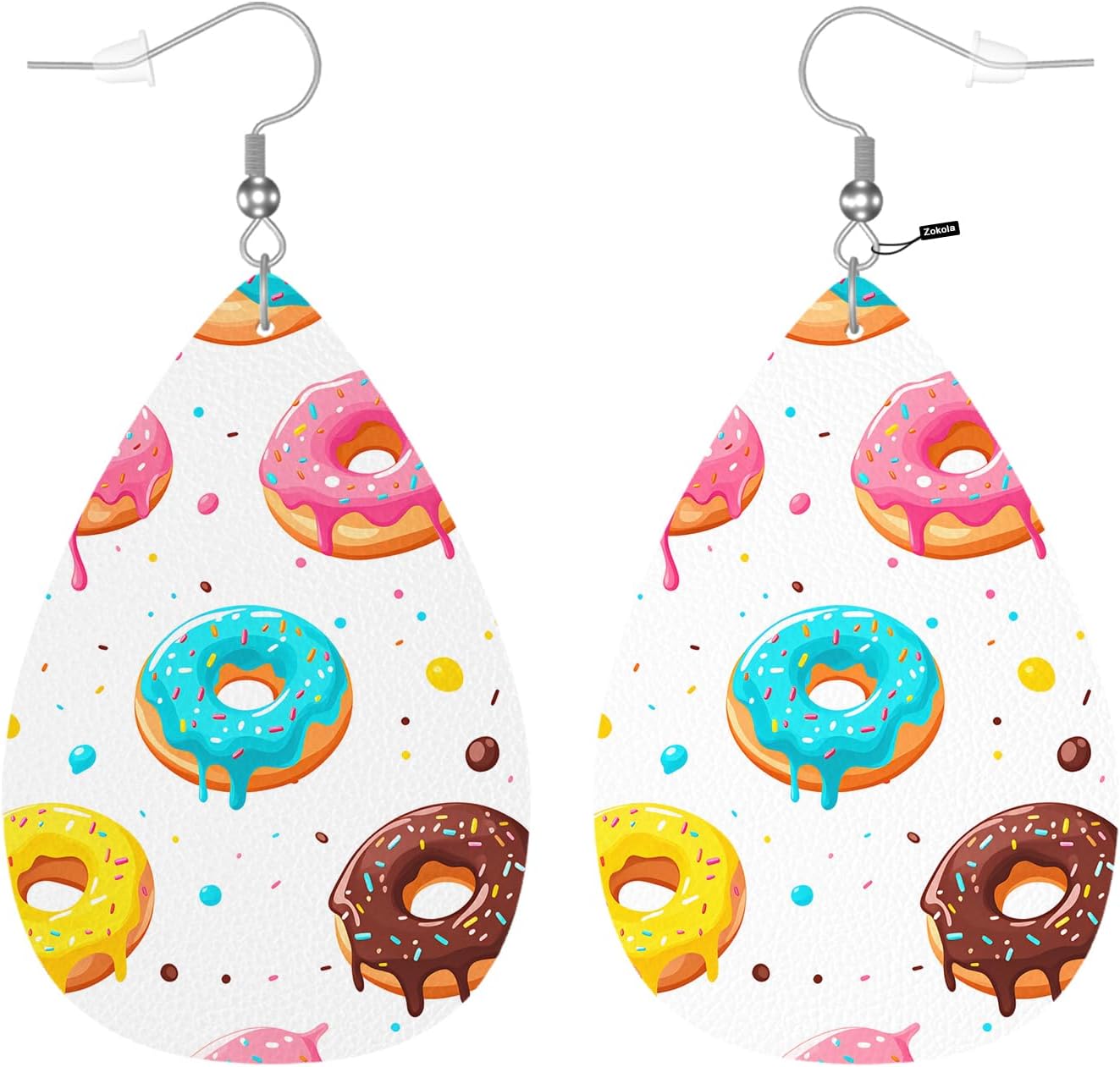 Zokola Donuts Earrings For Women Friends Gift, Colored Sprinkles Pink Chocolate Lemon Donuts Drop Earrings Set, Lightweight Teardrop Faux Leather Earrings Jewelry