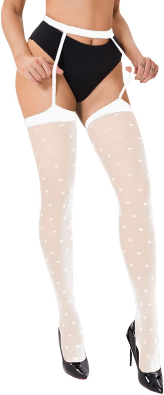Heart Suspender Pantyhose,Sheer Mesh Sexy Thigh High Stockings Women,Petite Mock Garter Tights Vday Date fits 0-6