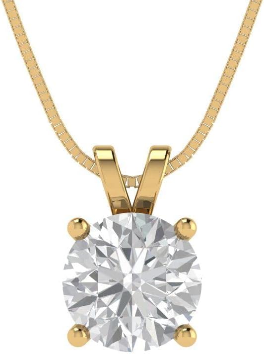 Clara Pucci 14K Yellow Gold Plated Solitaire 18" Box-Chain Necklace - Sterling Silver 1ct Round Cut Moissanite Pendant