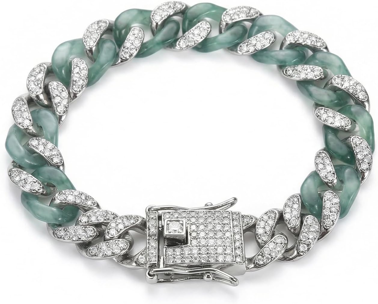 Natural Green Jade Cuban Link Bracelet for Men Women, Genuine Jade Chain Bracelet with Stainless Steel Clasp, Unisex Polished Jade Jewelry, Gift for Him Her