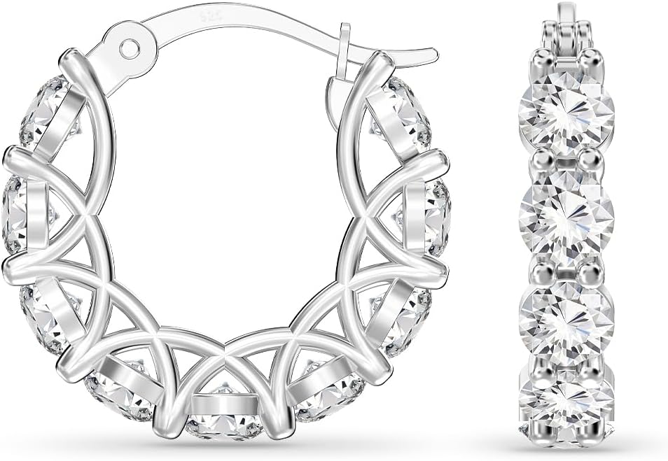 LeCalla 925 Sterling Silver Cubic Zirconia Hoop Earrings | Silver Small Chunky CZ Hoop Earrings | Hypoallergenic Round Click-Top Earring Hoops for Women